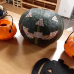 🍭おかしをくれないといたずらするぞ~👻 みんなで仮装してハロウィンをしました。 0.1才 おばけ(手形をした後に顔をつけました)👻 2才 トランプさん(クレヨンでマークを書きました)♠ 3才 インディアン(はさみで模様をつけました)🎪 4才 鬼滅の刃(ビニール袋で着物を作りました)👘 楽しんだ後は、保育園の前の高齢者施設(サンケアさん)の方に仮装を見せに行きました。 「かわいい」と言ってもらえてみ […]
